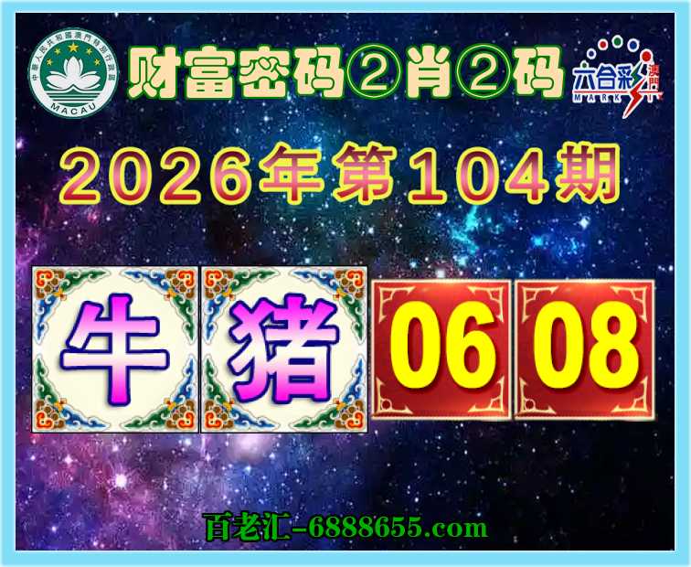 104期:【财富密码】 🚲②肖②码🚲【牛猪】【06.08】开:马01