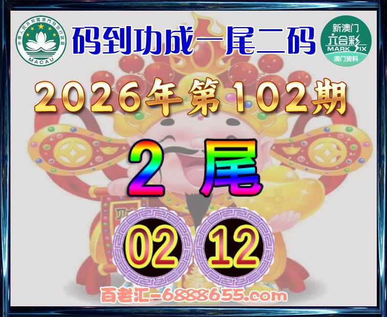 102期:《码到功成》 🥩一尾二码🥩【2尾主:02.12】开:20