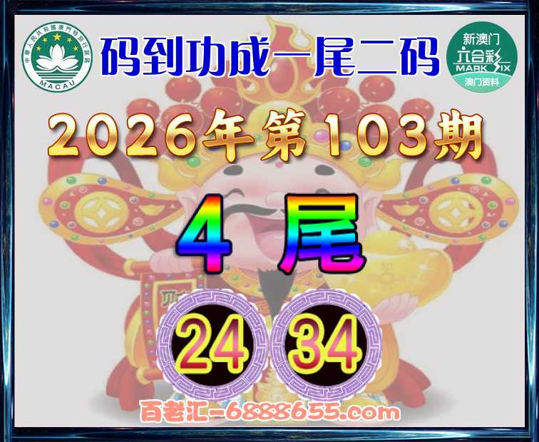 103期:《码到功成》 🥩一尾二码🥩【4尾主:24.34】开:06
