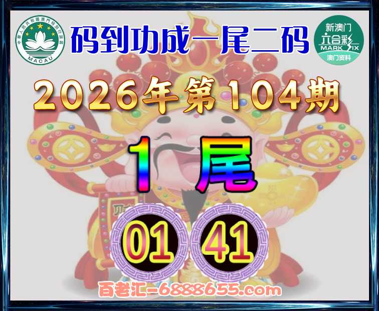 104期:《码到功成》 🥩一尾二码🥩【1尾主:01.41】开:01